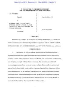 Filed under 42 U.S.C. § 1983, the complaint asserts claims of excessive force, failure to intervene, and indemnification against the City of Superior under Wisconsin law. Cuypers seeks compensatory and punitive damages, attorneys’ fees, and a jury trial. The filing alleges ongoing physical injuries, PTSD diagnosis, lost employment, and relocation to Colorado as lasting consequences of the incident.