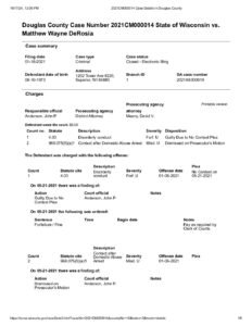 State of Wisconsin vs. Detective Matthew Wayne DeRosia – Douglas County Case 2021CM000014 (Jan. 18, 2021 – May 24, 2021)