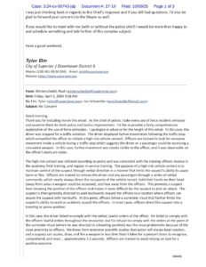 The emails conclude with multiple offers from both Councilor Elm and Chief Winterscheidt to meet in person with the concerned citizen to further discuss the incident. The correspondence emphasizes transparency, public accountability, and the city’s willingness to engage residents on policing practices—issues central to local government oversight and taxpayer-funded law enforcement accountability.