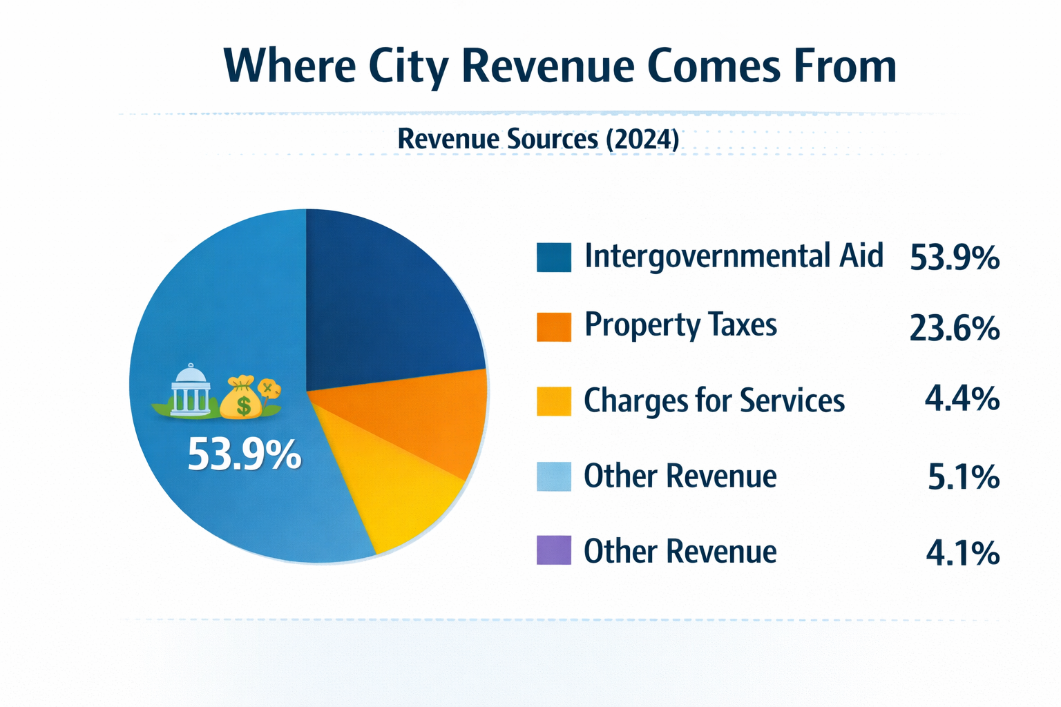 53.9% of the city’s governmental revenue comes from state and federal funding.
